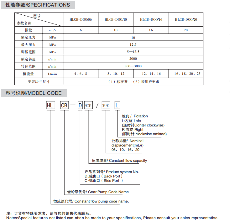 HLCB00/00系列恒流泵是具有軸向問隙自動補償的外嚙合齒輪泵與恒 流溢流我組成的口流雜,該系列產品外形尺寸小,結構簡單,工共性好。主 要用于農業機械和工程車輛的液壓動力轉向系統,提供恒定流量,確保系統 安全,可信賴,穩定的工作。